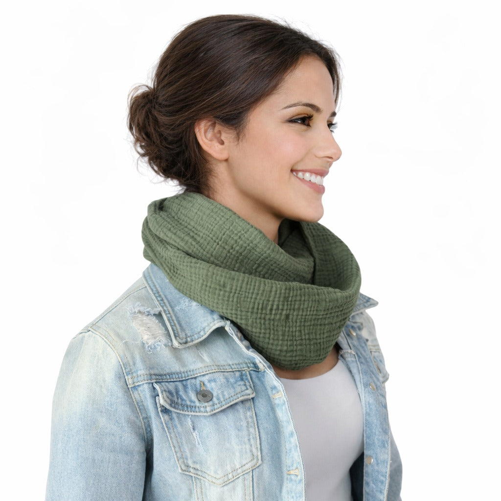 Musselin Loop Schal (Olivgrün)