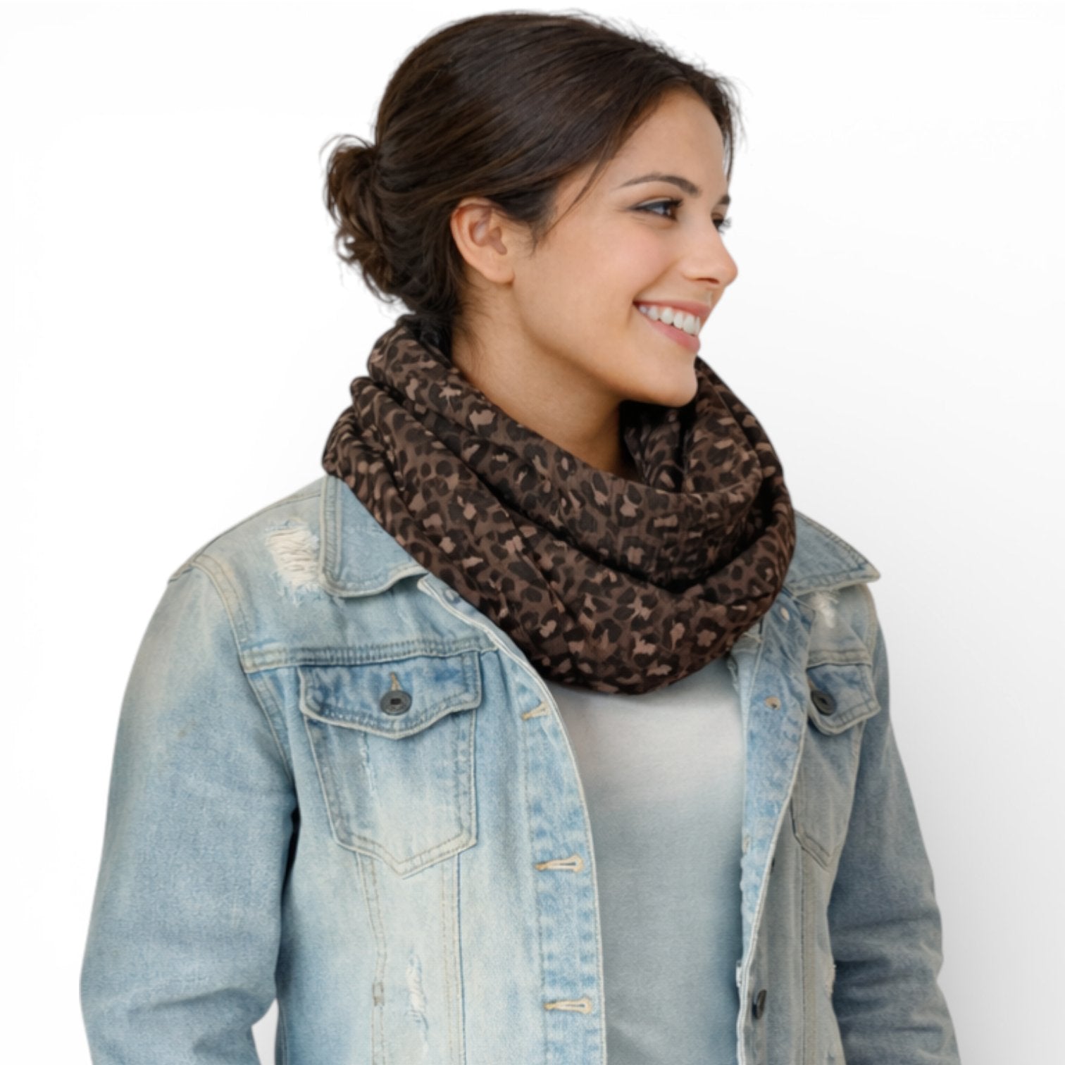 Ein stilvoller Damen Loop Schal für alle, die hochwertige Materialien, angenehmen Tragekomfort und trendbewusste Muster wie Leopardenprint in einem vielseitigen Accessoire vereint suchen. Ideal als modisches Halstuch für jede Saison und perfekt kombinierbar mit eleganten sowie lässigen Looks.